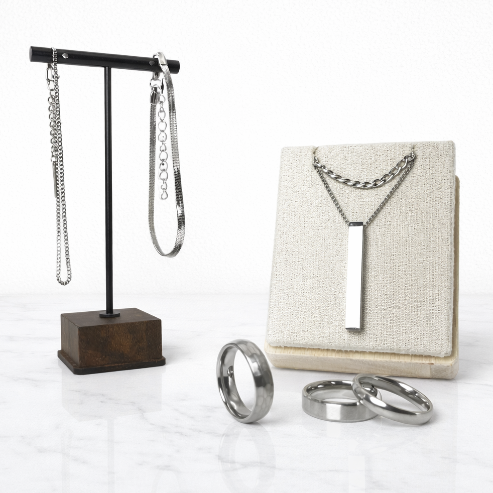 Angle Jewelry uses durable, water-resistant stainless steel built for everyday wear.